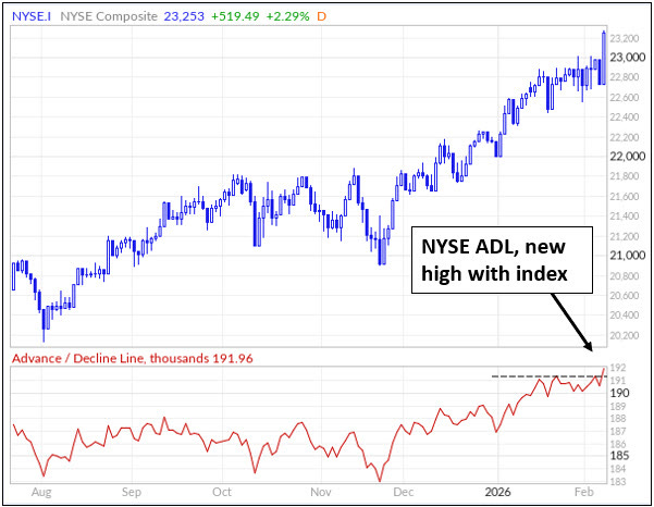 Elsewhere, the NYSE Composite advance decline line made a new high, which is constructive.