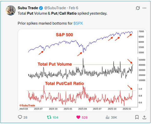 It doesn’t feel an exaggeration to say pockets of the market have suffered crashes in recent weeks. SLV dropped -40%, IGV -30%, and IBIT -50%. For an interesting discussion of these moves, see The Short Bear’s take below. If these moves have now played out, a headwind for QQQ may be diminishing.