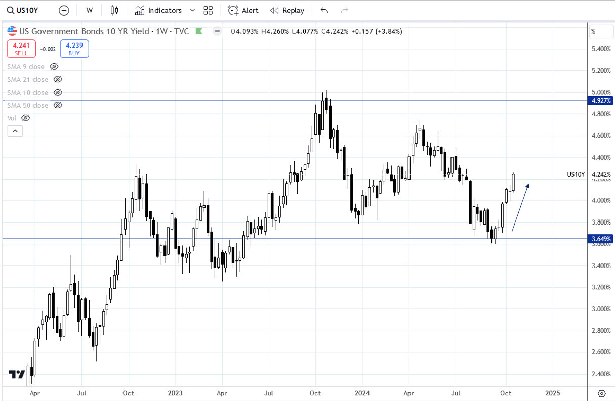 Next week brings data releases relating to both sides of the Fed’s mandate: on Thursday we get PCE, then on Friday we get NFPs and ISM-M. The Fed is now in blackout ahead of the next FOMC meeting on 6-7 November, so Timiraos et al are back on deck.