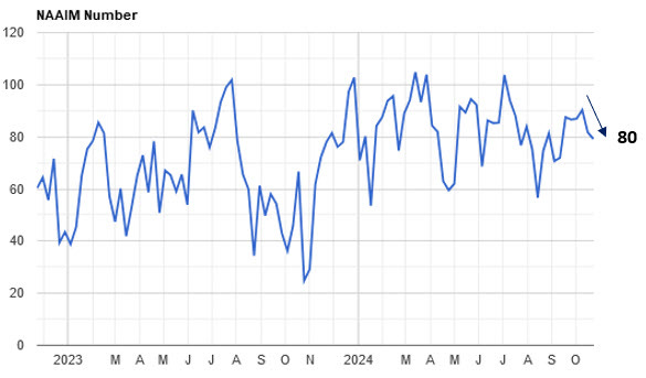 NAAIM: down -3pts to 79, having been up at 90 two weeks ago.
